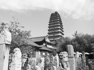 如今,當年有著11個院落氣勢的薦福寺只余塔院,唐代的遺存中也僅留下為數(shù)不多的幾個柱礎(chǔ),但歷史所賦予小雁塔的文化脈落卻延續(xù)傳承至今。行走于千年古樹掩映的小雁塔塔院各殿宇之間,明清時期的文化氣息透露出小雁塔的發(fā)展軌跡。由南至北依次排列的南山門、鐘樓、鼓樓、慈氏閣、東西小亭、大雄寶殿、藏經(jīng)樓、方丈殿、白衣閣等單檐或重檐的歇山式建筑,因歷史原因已失去它原本的佛教用途,但建筑本身仍保存得十分完好。這些佛寺特有建筑,是體現(xiàn)小雁塔絲路文化價值特征的一個重要載體。