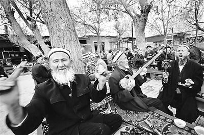 圖為喀什地區(qū)莎車縣阿曼尼沙汗公園內(nèi),民眾觀看木卡姆藝人演唱。 圖片來(lái)源:中國(guó)旅游報(bào)