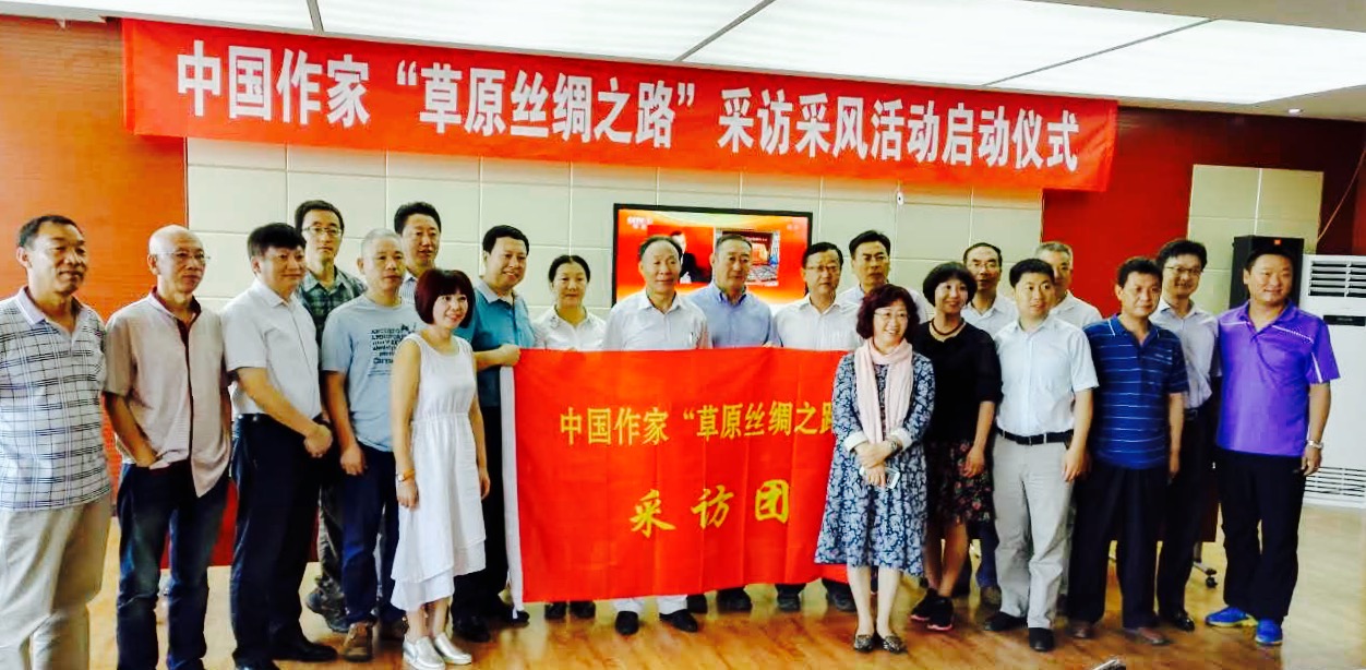 “草原絲綢之路”是蒙古草原地帶溝通歐亞大陸的商貿(mào)大通道,是絲綢之路的重要組成部分,其形成、發(fā)展和繁榮代表了中國歷史的一個輝煌時期,也對研究中西經(jīng)濟(jì)、文化的交流與發(fā)展起到了重要作用。為配合國家“一帶一路”戰(zhàn)略部署,感知“一帶一路”沿線的歷史文明和時代變化,進(jìn)一步引導(dǎo)作家深入生活、扎根人民,6月30日至7月9日,由中國作協(xié)主辦的“草原絲綢之路”采訪團(tuán)穿越寧夏、內(nèi)蒙古、黑龍江三個省區(qū),深切學(xué)習(xí)體悟了沿線地區(qū)的輝煌歷史和豐富深厚的文化底蘊(yùn)。采訪團(tuán)以中國作協(xié)副主席白庚勝為團(tuán)長,中國作協(xié)創(chuàng)聯(lián)部副主任馮秋子為領(lǐng)隊,團(tuán)員有楊志軍、墨白、王華、嚴(yán)寒、姚賽、劉迪生、徐峙、黃靈香、阿郎、牛紅旗等。