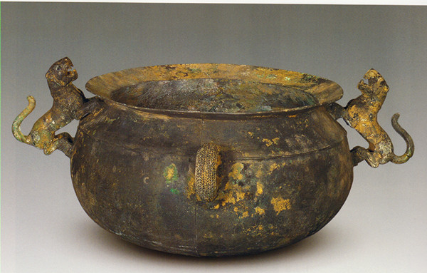 第二,在這一地區(qū),具有自身特點的青銅器以兵器和裝飾品為主,有一定數(shù)量的青銅容器,但少見大型禮器,樂器不發(fā)達(dá)但各具特征??赡芎彤?dāng)時不同族群之間復(fù)雜的矛盾有關(guān),青銅文化遺存中,最典型的器類就是兵器和裝飾品,幾乎幾個小區(qū)域都是這樣,顯示出當(dāng)時活躍在這一地區(qū)的“夜郎”等西南夷諸族群尚武而愛美的文化特質(zhì)。相反,作為中原地區(qū)青銅文化象征的青銅禮器卻在這一地區(qū)始終未發(fā)展起來,我們雖然也在一些地區(qū)發(fā)現(xiàn)較大型的青銅器如鼎、簋、壺、釜、洗(赫章可樂、威寧中水和曲靖盆地均有出土)等,但數(shù)量少而單一,而且極有可能是從外面?zhèn)魅牖蚴钱?dāng)?shù)胤轮频臇|西,不構(gòu)成該地區(qū)青銅文化的主體。