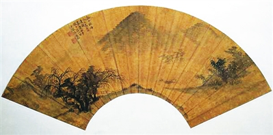 扇畫(huà)的落款時(shí)間是“嘉慶廿年端午后一日”,即嘉慶二十年(1815)農(nóng)歷五月初六,張?jiān)泪录螒c十四年(1809)中探花,授予翰林院編修職務(wù),兩年后嘉慶十六年(1811)秋,張?jiān)泪乱愿赣H八十大壽為由請(qǐng)假南歸,祝壽后繼續(xù)請(qǐng)假在家陪侍父親,不料,嘉慶十八年(1813)正月,張?jiān)泪赂赣H突然因病去世,所以張?jiān)泪戮筒坏貌焕^續(xù)待在家里守制三年。根據(jù)清朝的禮制,守制滿(mǎn)二十七個(gè)月即可當(dāng)三年。嘉慶二十年(1815)四月,張?jiān)泪率刂破跐M(mǎn),就可以回京復(fù)職。古時(shí)由于交通不發(fā)達(dá),舟楫是南方人最主要的交通工具,張?jiān)泪卤鄙现性宰咚窞橹?,去京城要走好幾個(gè)月。端午后一日正好是張?jiān)泪路稻?fù)職的途中,應(yīng)該說(shuō)當(dāng)時(shí)張?jiān)泪滦那楸容^復(fù)雜,一方面他一路走一路游山玩水,美景勝概盡收筆下,每到一處寫(xiě)下了很多贊美的詩(shī)文,吟詩(shī)作文之余,畫(huà)一把扇子,以備避暑之用便是順理成章、再正常不過(guò)之事了。另一方面,他守制賦閑在家?guī)啄?,十分清凈,一想到又要重回官?chǎng),爾虞我詐,大有山雨欲來(lái)之勢(shì),于是他有感而發(fā)、心隨筆運(yùn)、凝思成景,一幅仿元人的《溪山欲雨》圖便躍然紙上,也因此暗示將要面臨的官場(chǎng)險(xiǎn)境。值得一提的是,三年后,嘉慶二十三年(1818),張?jiān)泪乱蜃搿睹麒b》按語(yǔ)錯(cuò)誤被革職,似乎冥冥中已有安排,三年前就有預(yù)感,世上之事就有這么巧合。“零縑殘墨,人多寶之”,當(dāng)這把折扇被用爛以后,就被有心人拆下扇骨裱成扇面悉心收藏,故得以留傳至今。
