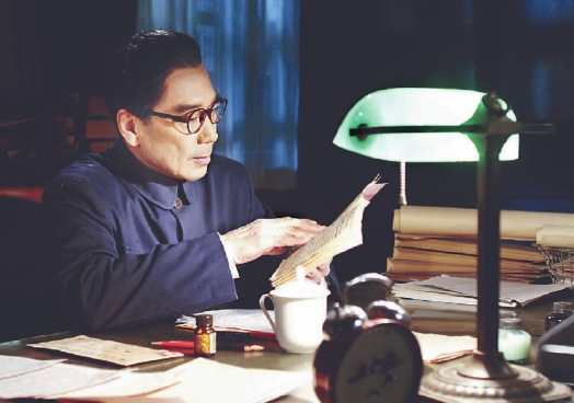 ●孫維民:因?yàn)榻?jīng)費(fèi)的限制,我們沒(méi)有條件像國(guó)外的一些傳記片那樣,先拍人物的年輕時(shí)代,然后停機(jī)一兩個(gè)月讓演員去減肥、找狀態(tài),劇組和場(chǎng)地都不計(jì)成本地等著,直到重新開(kāi)機(jī)拍攝人物的老年時(shí)代。因?yàn)橹心虾N骰◤d場(chǎng)景的拍攝時(shí)間所限,我經(jīng)常上午演的是壯年時(shí)代的周恩來(lái),精神飽滿、意氣風(fēng)發(fā),下午演的是老年時(shí)期的周恩來(lái),臥在病床上神情憔悴,眼神中又要綻放出堅(jiān)毅的光芒——我要不停地在兩種狀態(tài)中切換,這十分考驗(yàn)演員的演技和對(duì)人物的理解。