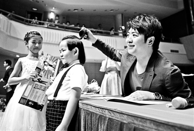 昨天,近千名琴童歡聚在北京音樂廳,鋼琴家郎朗在這里舉辦了《郎朗鋼琴啟蒙教程》的首發(fā)式,并現(xiàn)場指導(dǎo)六位小朋友彈奏教程中的內(nèi)容。