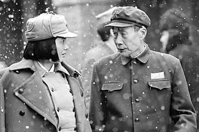 電影開演,銀幕上是黑白色調(diào),茫茫風(fēng)雪中,一些被動(dòng)員來支疆的女戰(zhàn)士因不滿上級(jí)介紹對(duì)象,紛紛帶著情緒要離去。這時(shí),一輛軍用吉普車駛來,甘祖昌出現(xiàn)了。他不是來阻止、批評(píng)她們的,而是來送送這些女戰(zhàn)士,他說,無論去留,你們都是建設(shè)祖國的好青年!一組簡短的鏡頭,演員李雪健就把一位經(jīng)歷過二萬五千里長征,一身英氣、可親、可敬的形象,定格在銀幕上。陶慧敏飾演的龔全珍——那個(gè)有著一雙純情、羞澀、美麗的大眼睛的女孩也在場,這是她初識(shí)“甘部長”。隨后,影片跟從故事的發(fā)展,由黑白片轉(zhuǎn)為彩色片,于細(xì)節(jié)處展現(xiàn)甘祖昌和龔全珍這對(duì)革命伉儷扎根家鄉(xiāng)、建設(shè)家鄉(xiāng)的時(shí)代語境,其中既有對(duì)甘將軍艱苦奮斗的現(xiàn)實(shí)主義刻畫,也有對(duì)龔全珍一生相隨、大愛無私的浪漫描繪。