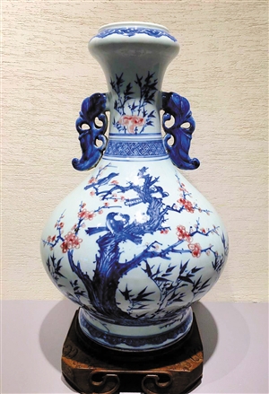 楊衛(wèi)告訴記者,青花釉里紅出現(xiàn)于元代,無論從傳世數(shù)量、工藝難度、創(chuàng)燒時(shí)間及裝飾效果來看,青花釉里紅的技術(shù)含量最高,相較于青花的淡雅、釉里紅的熱烈,青花釉里紅則兼具二者之美,形成青紅相間、冷暖對(duì)比、動(dòng)靜相宜的審美特征,彌足珍貴,讓自己很癡迷。