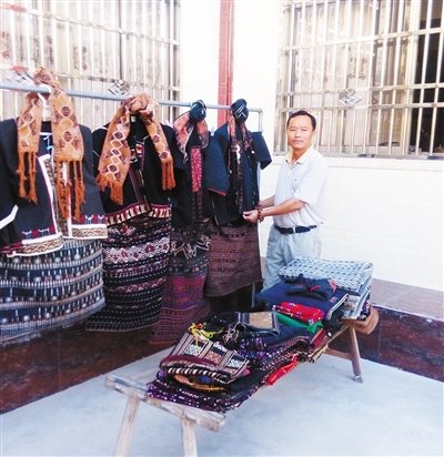 “這一件是黎族哈方言區(qū)的婚禮服,這一件是黎族哈方言區(qū)的祭禮服,這一件是龍被……”趁著好天氣,容族新和妻子把黎錦、崖州布騰到院子里,這樣的拾掇晾曬,夫妻倆一個月就要進行兩次,怕它們受潮發(fā)霉。