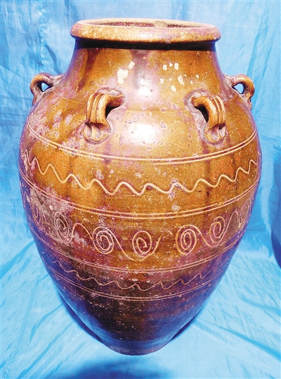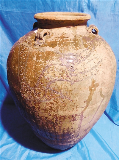 在這間“博物館”里,有一件很有價值的古窯藏品——唐代青釉龍紋四耳大缸,這是容族新2000年尋訪而得,缸體上的龍紋栩栩如生,完整生動。它的珍貴之處不止于其年代久遠及蘊含的藝術(shù)價值,更因它代表著崖州地區(qū)源遠流長的燒窯歷史。