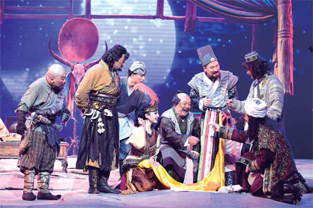 內(nèi)蒙古自治區(qū)的藝術(shù)創(chuàng)作和演出也日益繁榮,以原創(chuàng)劇目為重點,相繼推出了《北梁》等100多部彰顯草原文化核心理念的優(yōu)秀劇目。集中打造了《草原情·中國夢》等30多部主題晚會,《草原記憶》《呼倫貝爾大雪原》《拓跋鮮卑》《花落花開》等一批優(yōu)秀劇(節(jié))目在國家各類演出比賽中頻頻獲獎?!秶业暮⒆印返?4個項目獲得了2014年、2015年度國家藝術(shù)基金資助。全區(qū)文藝院團每年下基層演出不少于7000場?!恶R可·波羅傳奇》赴美國等地駐場演出560多場,內(nèi)蒙古民族藝術(shù)劇院無伴奏合唱團等在保利院線進行全國巡演。