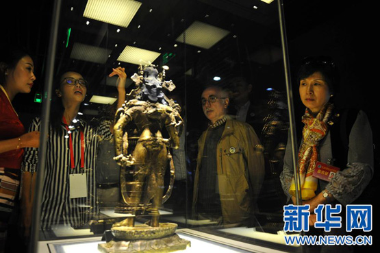 9月12日,觀眾在珍寶館觀看布達拉宮精品文物展上展出的唐卡。 當(dāng)日,布達拉宮精品文物展在拉薩布達拉宮腳下的珍寶館開幕,105件展品是從數(shù)以萬計的宮藏稀世珍寶中甄選的精品文物,絕大多數(shù)是首次與世人見面。 作為第三屆中國西藏旅游文化國際博覽會第二分會場的展覽展示部分,本次展出的105件文物包括唐卡、造像、法器、瓷器、玉器、料器等,大部分屬于一級文物,承載了豐厚的歷史文化信息。 (晉美多吉 攝)