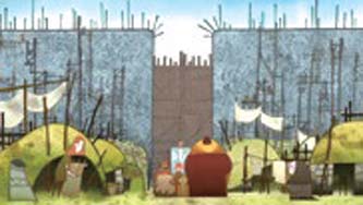 由于不使用透視畫法,《凱爾經(jīng)的秘密》造成了鏡頭畫面對立體空間的壓縮,帶來了空間上的平面化。不過,在空間感的表現(xiàn)上依然用顏色做了折中處理:為了避免空間過于平面,在整體空間的顏色上依舊注重了近實遠虛,例如圖11中,畫面遠處的腳手架就在顏色的處理上進行了霧化。