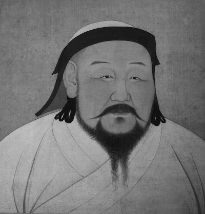 這次來(lái)的展品,是忽必烈的半身肖像(上圖),也是一件真正的國(guó)寶文物。臺(tái)北故宮收藏了一套元代帝王的半身相冊(cè),共有八幅,從元太祖成吉思汗到元寧宗,元世祖像是其中的一幅。元世祖像在歷史書(shū)上很常見(jiàn),但是真像依然沖擊力十足,不光容顏逼真,而且尺寸很大,至少是等身的。在古代,除非是專門(mén)制作的帝王肖像,否則很少有人像能達(dá)到這種水平。元世祖的容貌是很有典型的蒙古人特征,他面貌渾圓飽滿,身穿白袍,頭戴皮帽。古代蒙古人不論身份高低,男子皆留“婆焦”發(fā)型,就是剃除頂部頭發(fā),只留前額和耳側(cè),然后在耳后結(jié)發(fā)辮為環(huán),歷史上元朝的帝王皆留此發(fā)型。由于沒(méi)有明確的題記,忽必烈畫(huà)像的作者已不可考,這幅畫(huà)像在元代時(shí)作為先帝御容,被供奉于大都的皇家寺廟大圣壽萬(wàn)安寺,明代之后進(jìn)入宮廷保存,清朝時(shí)期作為歷代帝王像之一,存于故宮南薰殿,后被運(yùn)至臺(tái)灣。