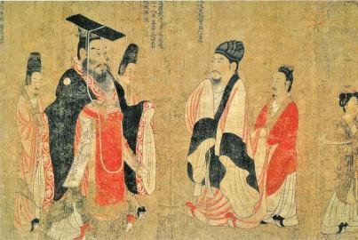 從畫像來看,雖仍有程式化的傾向,但在人物個性刻畫上表現(xiàn)出很大的進(jìn)步,不落俗套,而顯得個性分明;畫中按等級森嚴(yán)的封建倫理觀念,處理人物的大小?!稓v代帝王圖》用重色設(shè)色和暈染衣紋的方法,有佛教藝術(shù)的影響。