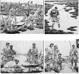 在小學(xué)課本中,有一個(gè)真實(shí)的故事。故事的名字就叫做《金色的魚鉤》。在中國人民革命軍事博物館的展廳中,不僅有紅軍“過草地”時(shí)的模擬景象,也有一組插畫專門講述了這枚“魚鉤”的故事。