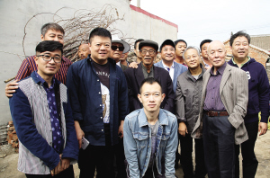 黃莊村的鄉(xiāng)親們確實(shí)都在等著呢,好多人老早就聚集在吳家過(guò)道前,并且打出了“熱烈歡迎馬季弟子回恩師故鄉(xiāng)”的橫幅,道出全村人迎候這批特殊客人的激動(dòng)心情。車(chē)子進(jìn)村時(shí),面對(duì)黑壓壓一片人群,我對(duì)姜昆說(shuō):“老宅過(guò)道的路不太好走,您就在車(chē)?yán)镄菹?。”姜昆說(shuō):“父老鄉(xiāng)親們這么熱情,我哪能不下車(chē)!”他抄起拐杖,第一個(gè)走下車(chē)去。隨后,馬東也跟著從車(chē)?yán)锵聛?lái),與圍攏過(guò)來(lái)的人們緊緊握手。人群中有人喊:“姜昆,是姜昆,這回可看到真人了!”“馬東,馬東,歡迎你回家!”劉偉、王謙祥、李增瑞等人也紛紛走下車(chē)來(lái),與鄉(xiāng)親們見(jiàn)面。