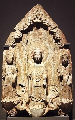 魏晉南北朝是中國歷史上政權(quán)更迭最頻繁的時(shí)期,三百余年的割據(jù)戰(zhàn)爭,給人們的生活帶來了深重災(zāi)難。佛教的傳播,既給當(dāng)時(shí)文人士大夫們帶來了精神寄托,也極大地安慰了一般信眾,營造了來世種種美好的憧憬。在因果循環(huán)和生死輪回學(xué)說的導(dǎo)引下,佛教不僅能救贖個(gè)人和家庭的悲劇,還能恩澤父母來世和七世祖先,甚至對國家的祈愿也能實(shí)現(xiàn)?!堵尻栙に{(lán)記》載洛陽北魏晚期的人們布施和捐助佛教時(shí),“王侯貴臣棄象馬如脫屣,庶士豪家舍資財(cái)若遺跡。”這種空前的信仰熱忱,將佛教造像推至一個(gè)無比令人神往的佛國世界。此中,作為集萬千美好于一身的佛、菩薩,就是寓意佛教理想和信徒福報(bào)的外在顯現(xiàn)。