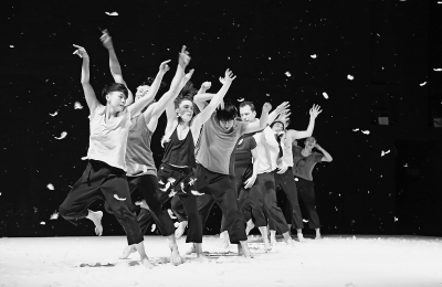 2008年之后,田戈兵進入了一個新的轉折。以前他作品中的癲狂拼貼、繁雜道具消失了,代之以最低限度的裝備。因陋就簡的簡潔更為神秘。比如2010年的作品《朗誦》,一群男演員以各種身體姿勢朗讀著各種公共文本,直至進入酣暢淋漓的自由境界。歷史的朗讀姿態(tài)被提示,被瓦解,觀眾在前所未有的上下文中面對現(xiàn)實。演出的最后,舞臺上大雨滂沱,演員在慢動作的微笑里邁著正步,在汗水中徒勞地獲取朗誦的高潮,之后轟然倒地。那一年在草場地“生活舞蹈工作室”的兩場演出震驚了所有人。這部作品當時只是作為藝術節(jié)的觀摩作品,沒有在國內的任何劇場正式上演,但并不妨礙其生命力。它可以被修改、由不同的人重新演繹,甚至可能根據(jù)不同的演出場地進行因地制宜的改變。而不是像電影、電視劇這樣的一次性高成本的制作,放映之后就無法再進行調整與再創(chuàng)作。2013年,受到荷蘭戲劇節(jié)的邀請,《朗誦》重新登上舞臺,在荷蘭的幾大城市以及德國慕尼黑室內劇院巡演,引起轟動。