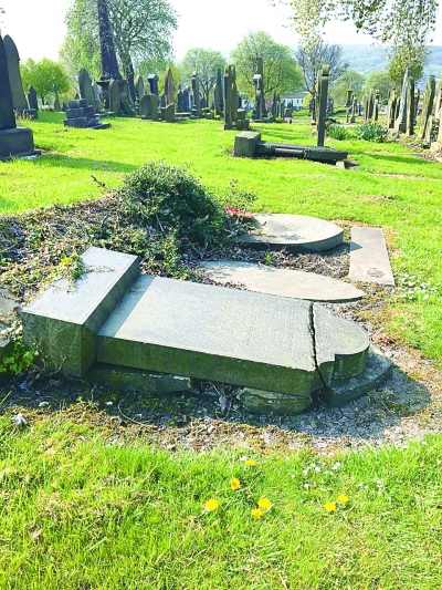 已倒塌碎裂的北洋水師水兵墓碑,分別為連金源、顧世忠、袁培福的墓碑。中國文物保護基金會供圖