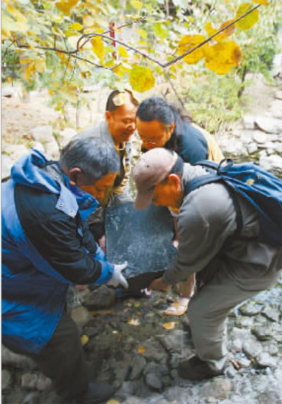 志愿者從商家手中搶救出長(zhǎng)城碑刻,并送到文物部門。