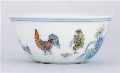 雞缸杯大約算是成化瓷器特色的登峰造極之作,明代晚期以來,在文人著述之中,其地位不斷攀升。說起雞缸杯,內(nèi)地藏家2014年于香港蘇富比以2.8億元拍得一件之后,曾用它喝茶。實(shí)際上,明郭子璋《豫章陶志》有云:“成窯有雞缸杯,為酒器之最?!笨梢婋u缸杯當(dāng)為酒器。實(shí)際上,成化官窯器中,酒器很多,綜合傳世品與出土物,各類不同紋飾的飲酒小杯接近40種,十分豐富?!疤臁弊止扌∏闪岘?,狀若茶葉罐,但據(jù)考證似也應(yīng)為酒器,做貯酒之用。據(jù)《漢書·食貨志》:“酒者,天之美祿?!敝了危朴钟小疤斓摯蠓颉敝Q。罐底所做“天”字或正當(dāng)此解。
