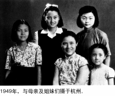 1949年,王曉棠(后左一)跟母親和姐妹在一起。
