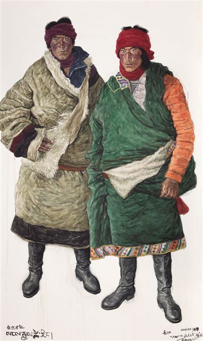 桑杰才讓與同伴(水彩)