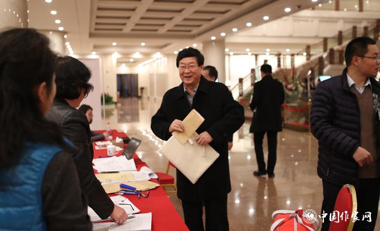 11月27日,中國作協(xié)第九次全國代表大會(huì)與會(huì)代表何建明報(bào)到。