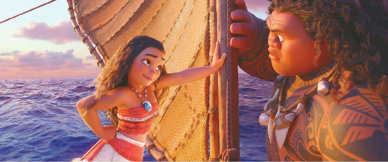 ●佟樂:我們有內部的反饋機制。從電影制作開始,到成品推出,大概會組織八到九次的放映。開始的時候,導演帶著制作團隊、編劇以及核心小組開始創(chuàng)作。因為前期制作存在很多問題,第一版、第二版通常都用分鏡頭來表現(xiàn)情境,然后找一些員工來配音。開始的版本不太流暢,因為是用鉛筆畫的,是2 D的,比如要表現(xiàn)莫阿娜出海,就畫一艘船、莫阿娜以及莫阿娜帶著小豬出海,雖然只有三幅畫,但三幅畫會拉到三秒鐘的長度,以配合完工電影的時長。