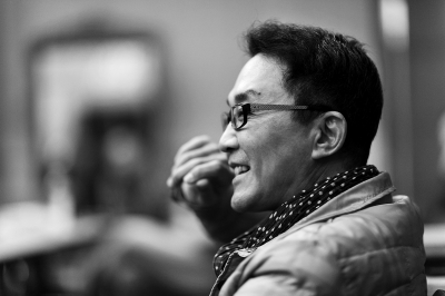 吳剛天生卷發(fā),和幾年前相比,帶著幾分疲態(tài),清瘦許多,和他參加影視圈兒活動時的前衛(wèi)時尚不同,眼前的他,更像是回歸了本色,鼻梁上戴一副金絲眼鏡,流露出幾分學(xué)者氣質(zhì)。