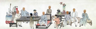 清代胡芑孫、任薰《吳郡真率會(huì)圖》,描繪的是當(dāng)時(shí)文人雅集的情形,畫中左一是過(guò)云樓第一代主人顧文彬。