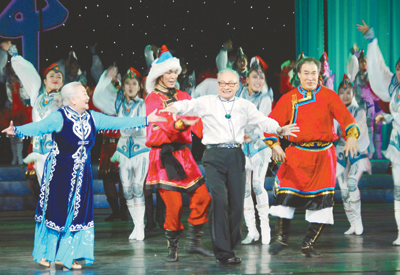 2014年7月2日晚,由第十一屆中國·內蒙古草原文化節(jié)組委會主辦,內蒙古自治區(qū)舞蹈家協會承辦的《舞悅內蒙古》舞蹈精品展演在烏蘭恰特大劇院精彩上演,賈作光、斯琴塔日哈、查干朝魯三位老藝術家和青年演員們同臺共舞