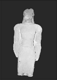 這件雕像的背部扁平,本來可能是靠墻而立。雕像人物身體表面殘存有紅色顏料的痕跡,裙裝之上本來涂有白石膏,二者形成鮮明的對比。根據(jù)該神廟中出土的另一尊雕像上的刻銘判斷,這尊雕像人物應該是里西安時期的一位統(tǒng)治者。