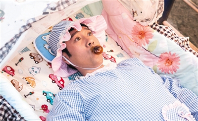 在前段時間一個爆紅的電影MV里,越來越放飛自我的蔡國慶唱著《蔡國慶送你365個“不”祝福》,一邊惡搞自己的成名曲,一邊化身霸道總裁、奶嘴寶寶和紅領巾少年。前一秒,舉手投足間還是正統(tǒng)的央視范兒,笑容妥帖、歌聲嘹亮。后一秒,就戴上滿是荷葉邊的嬰兒帽化身“巨嬰”。