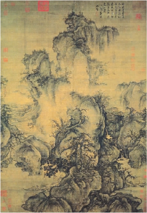 家園經(jīng)驗有著一種大尺度的伸延能力,這與“家-國-天下”的概念鏈的內(nèi)在同構(gòu)性密切相關(guān),而“家-國-天下”的概念鏈暗含著可以無限展開的意義鏈。生長萬物的土地所生成的自然情感是家園經(jīng)驗,人與萬物同在此地一起生長,構(gòu)成生生與共的關(guān)系,因此,萬物首先在存在論的本真意義上意味著是可能生活中的伙伴,而不是可以解剖為知識元素的對象?!凹?國-天下”的概念鏈?zhǔn)羌业臄U展形式,其中,國是家園的庇護系統(tǒng),所以,國的本意首先是家政,是經(jīng)世濟民的政治系統(tǒng),此乃“經(jīng)濟”之原義,就是說,作為一個政治系統(tǒng),國是保護家園生存系統(tǒng)的秩序建構(gòu)??梢钥闯觯皣摇笔且粋€秩序概念,而“家國”則是一個價值概念,即以家的精神而定義的國。進而,天下是世界政治系統(tǒng),意味著世界的秩序建構(gòu)。 “家-國-天下”雖然是三個層次的概念鏈,但其價值依據(jù)都是家,都是能夠以家的精神去定義的存在。于是,“家-國-天下”的概念鏈就形成了一個具有縱深的意義鏈,同時也生成具有縱深的經(jīng)驗形式,這個縱深的意義鏈和經(jīng)驗形式作為一種潛意識化入在書畫詩詞宮宇園林的視野中。