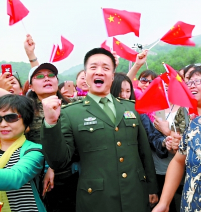 閻維文在長城參加軍中快閃 攝影:洪國荃