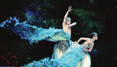 在2012年央視春晚舞臺(tái)上,楊麗萍的一支舞蹈《雀之戀》,被譽(yù)為“2012年春晚最美節(jié)目”?!度钢畱佟繁憩F(xiàn)了兩只孔雀的纏綿和愛戀,楊麗萍和搭檔王迪身著藍(lán)色的華麗孔雀裝,配合舞臺(tái)上藍(lán)綠色的夢(mèng)幻場(chǎng)景,猶如置身仙境。而這距離楊麗萍第一次以舞蹈《雀之靈》登上春晚舞臺(tái),已過去二十多年。(資料圖片)
