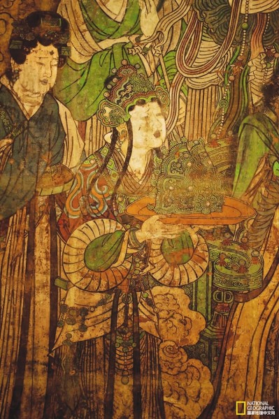這鋪壁畫出自山西省稷山縣興化寺??箲?zhàn)期間,這座寺廟被毀于一旦,片瓦不存,至今為壁畫留下不少未解的謎團(tuán)。