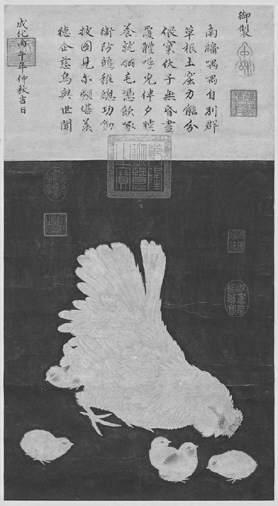 在此題畫詩(shī)中,明憲宗詳細(xì)描述了母雞悉心呵護(hù)小雞的場(chǎng)面,感慨之情油然而生,并希望更多人可以了解母愛(ài)的真誠(chéng)和偉大。