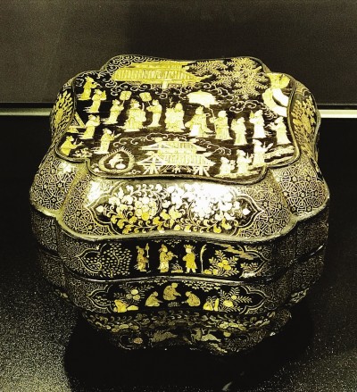 元代黑漆嵌螺鈿廣寒宮圖捧盒