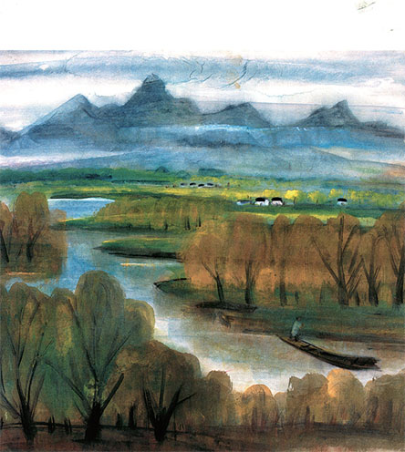 林風(fēng)眠的風(fēng)景畫,不僅限于西湖和秋林,還有描繪松林、山村、農(nóng)舍、溪流、海浪等題材,他的《風(fēng)景》創(chuàng)作于上個(gè)世紀(jì)50年代,以墨色層層渲染、以水性顏料融入濃墨,橫涂豎抹,以單純簡(jiǎn)潔的造型傳情,引人進(jìn)入清新、恬淡、優(yōu)美而深邃的意境。這與他汲取中國民間傳統(tǒng)藝術(shù)有著密切的聯(lián)系,他將民間藝術(shù)的情趣注入繪畫,帶來清新而鮮活的生命力。