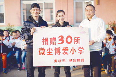 2015年10月,黃曉明、楊穎夫婦攜微塵基金捐贈30所博愛小學(xué)