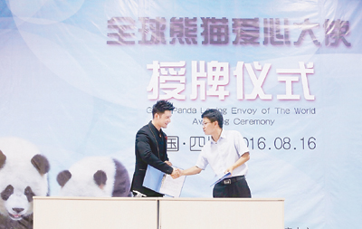 2016年8月,黃曉明當(dāng)選“全球熊貓愛心大使”