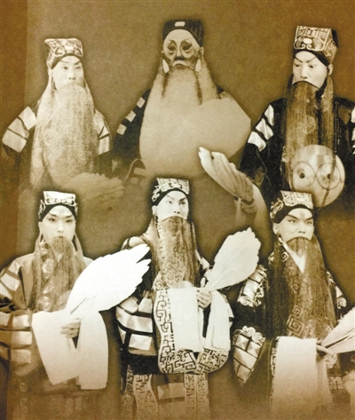 譚鑫培、譚小培、譚富英、譚元壽、譚孝曾、譚正巖演出《空城計》劇照合圖。