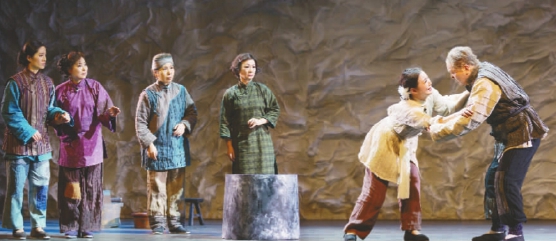 大幕拉開,人們看到的是一片老上海人似乎熟悉又帶著陌生氣息的場景。前客堂夫妻、亭子間嫂嫂、三層閣好婆、生煤爐的前樓娘舅、揀小菜的李家姆媽、拍著哄著啼哭嬰兒的玉珍……晾衣裳竹頭、煤球風(fēng)爐、此起彼伏的招呼聲……像夏衍先生的《上海屋檐下》 ,但生活在這里的人群比擠在石庫門里的七十二家房客更底層,更艱難,他們是真正在社會最底層摸爬滾打的貧民。有點像高爾基的《在底層》 ,但他們只是出賣力氣,還沒有出賣肉體,更沒有坑蒙拐騙。當(dāng)然最大的熟悉,在于編劇管燕草營造的上世紀初葉的底層生活的精準和精細。生活那么沉重!這種沉重,不僅表現(xiàn)在他們居住的擁擠得幾無轉(zhuǎn)身的逼仄空間,更集中體現(xiàn)在黃包車夫李三、玉珍生活的走投無路。它是對一個生活在這座城市里的市民曾有過的另一種記憶的召喚。除了燈紅酒綠流光溢彩,繁華的大樓后面其實還曾經(jīng)有過另一副憔悴得讓人心碎的面孔。