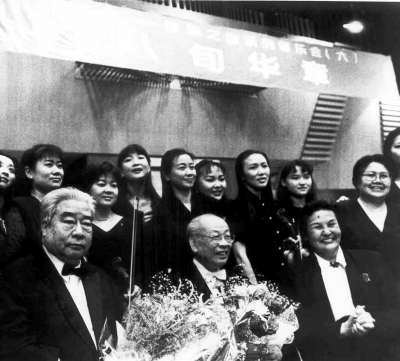 1997年6月7日,鄭小瑛率愛樂女室內(nèi)樂團,與李德倫、黃飛立(中)合作舉辦八旬華章音樂會。圖為演出后合影。