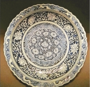 圖①:元青花大盤 本報記者 李韻攝/光明圖片