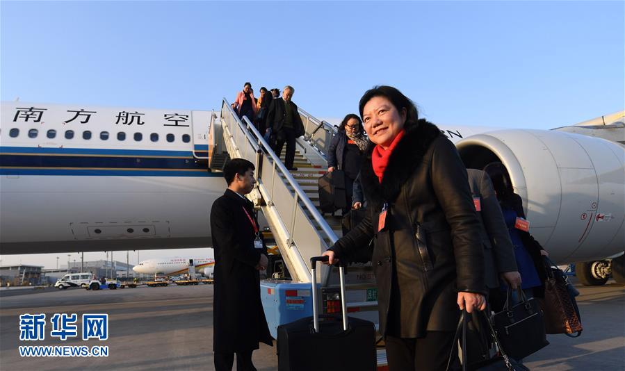 3月2日,出席十二屆全國人大五次會議的福建代表團乘坐飛機抵達北京。新華社記者趙穎全攝