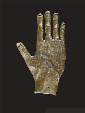 他所說(shuō)的這枚小小的印章就是“印度文明印章”。相鄰于“大洪水”記錄板的小小印章,發(fā)現(xiàn)于今巴基斯坦境內(nèi)印度河谷的哈拉帕文化遺址,制作于公元前2500前到前2000年之間,來(lái)自古印度文明。印章上雕刻出一只形似母牛的動(dòng)物,圖像之上還刻有一些符號(hào)。有關(guān)資料顯示,鼎盛時(shí)期的印度文明可能由于氣候變化、洪水和地震的原因衰落了,在人類(lèi)的記憶中消失了數(shù)千年。直到這些印章及其他遺存在19世紀(jì)的考古發(fā)掘中被發(fā)現(xiàn),它們成為發(fā)現(xiàn)印度文明的關(guān)鍵證據(jù)。