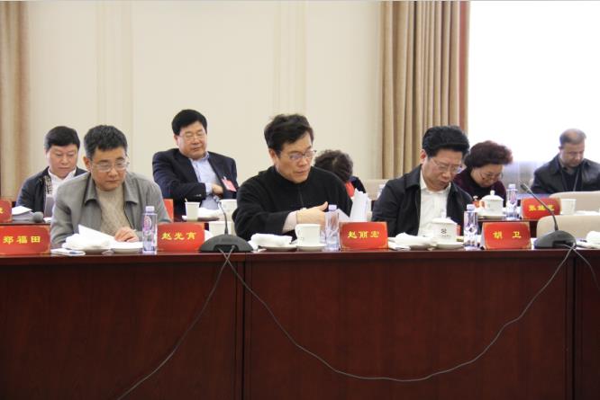委員潘魯生和濮存昕在小組會上交談
