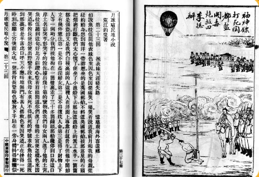 1904年,荒江釣叟創(chuàng)作的科幻小說:《月球殖民地小說》發(fā)表,連載于《繡像小說》,是中國第一篇原創(chuàng)科幻小說,雖然這部小說明顯可以看出受法國凡爾納的科幻小說《氣球上的五星期》的影響,但從內(nèi)容到形式上,都是一部地地道道的中國科幻小說,它極好地把章回小說的形式和科幻小說的內(nèi)核結(jié)合起來。但這部小說雖未完成,僅發(fā)表35回,但已達13萬字。小說描寫了一個叫龍孟華的湖南人,參與反清革命,流亡海外。日本友人玉太朗發(fā)明了世界上最先進的飛艇,載著他在世界各地尋找失散的妻子。在已發(fā)表部分的結(jié)尾處,一些來源不明的人駕駛著遠遠超過人類科技水平的氣球飛臨海島。故事中暗示他們來自月球,并把龍孟華和他的妻兒一起帶去月球游歷去了。