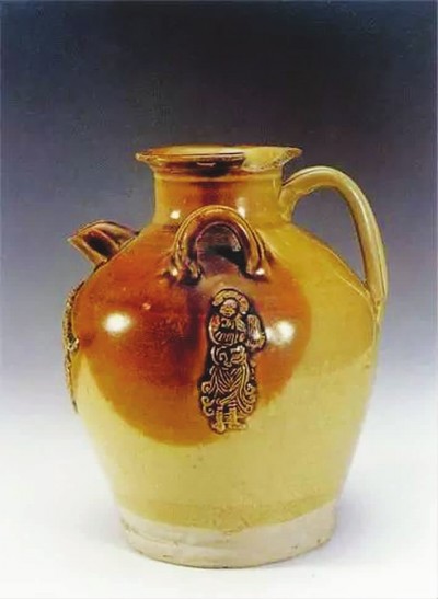 青龍鎮(zhèn)遺址考古展上展出的唐長(zhǎng)沙窖貼花褐彩壺。